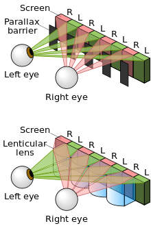 Image Credit: Cmglee, Parallax barrier vs lenticular screen, CC BY-SA 3.0Cmglee at Wikimedia Commons